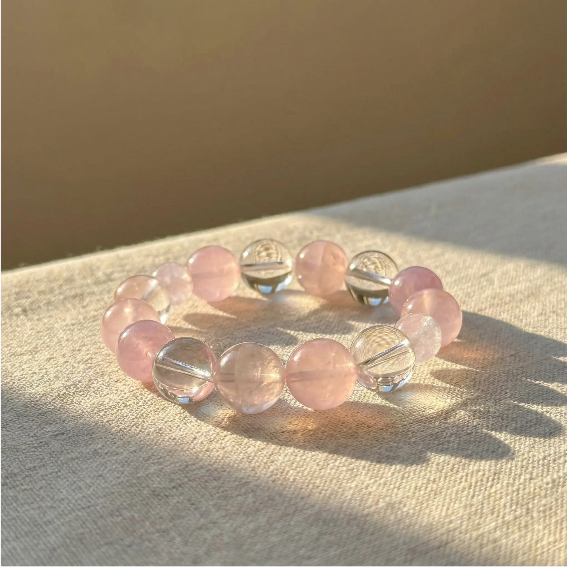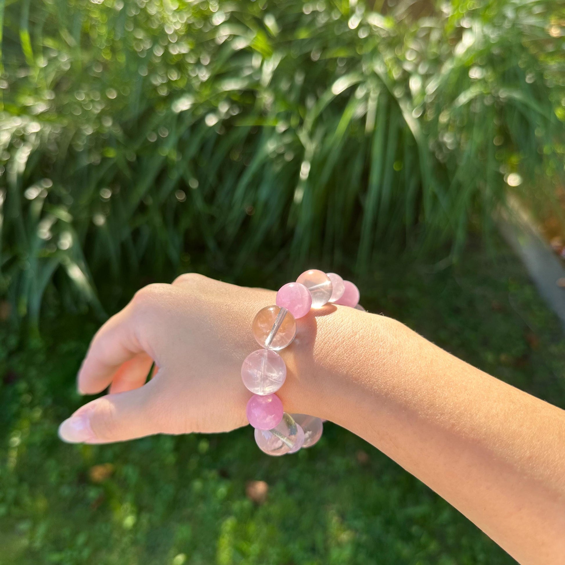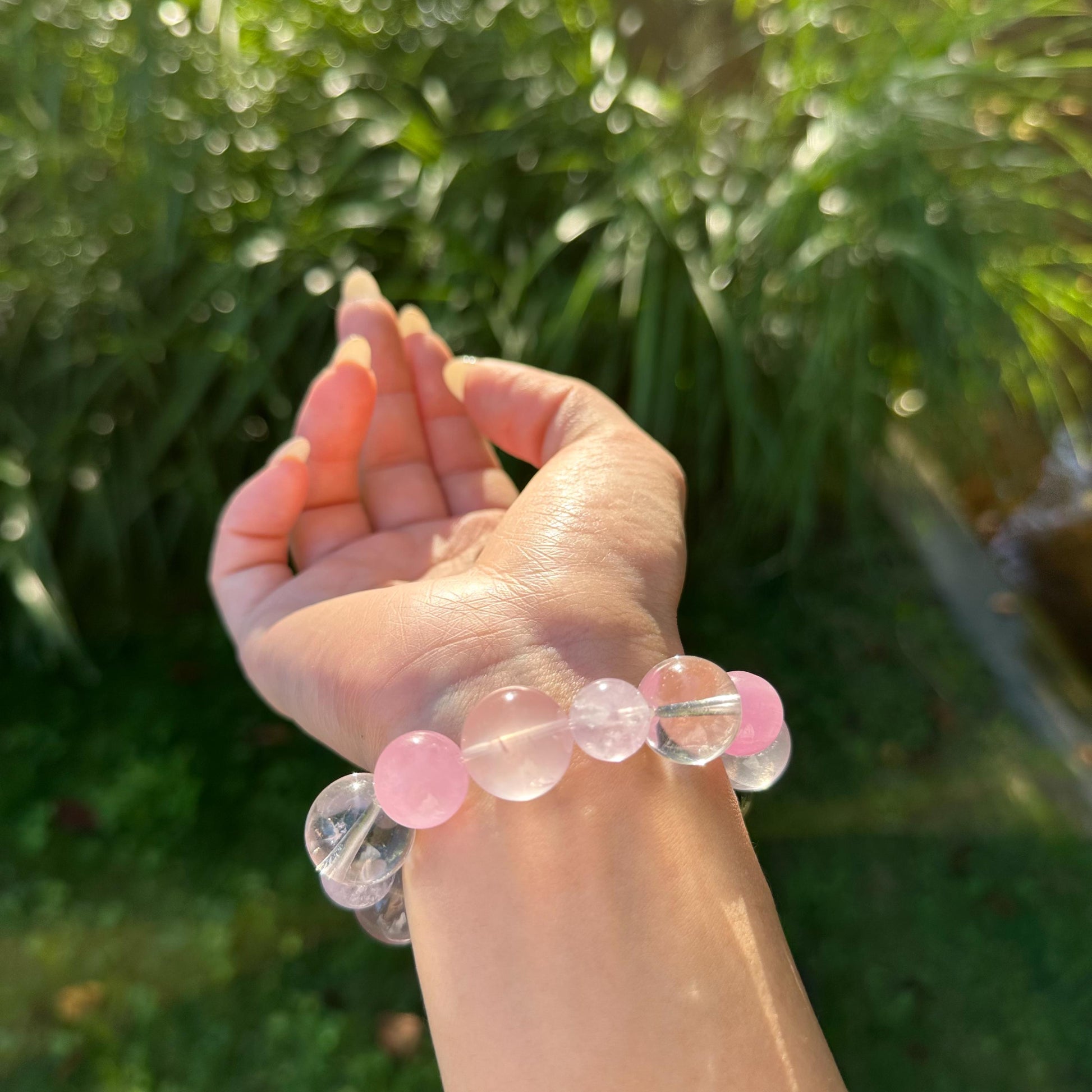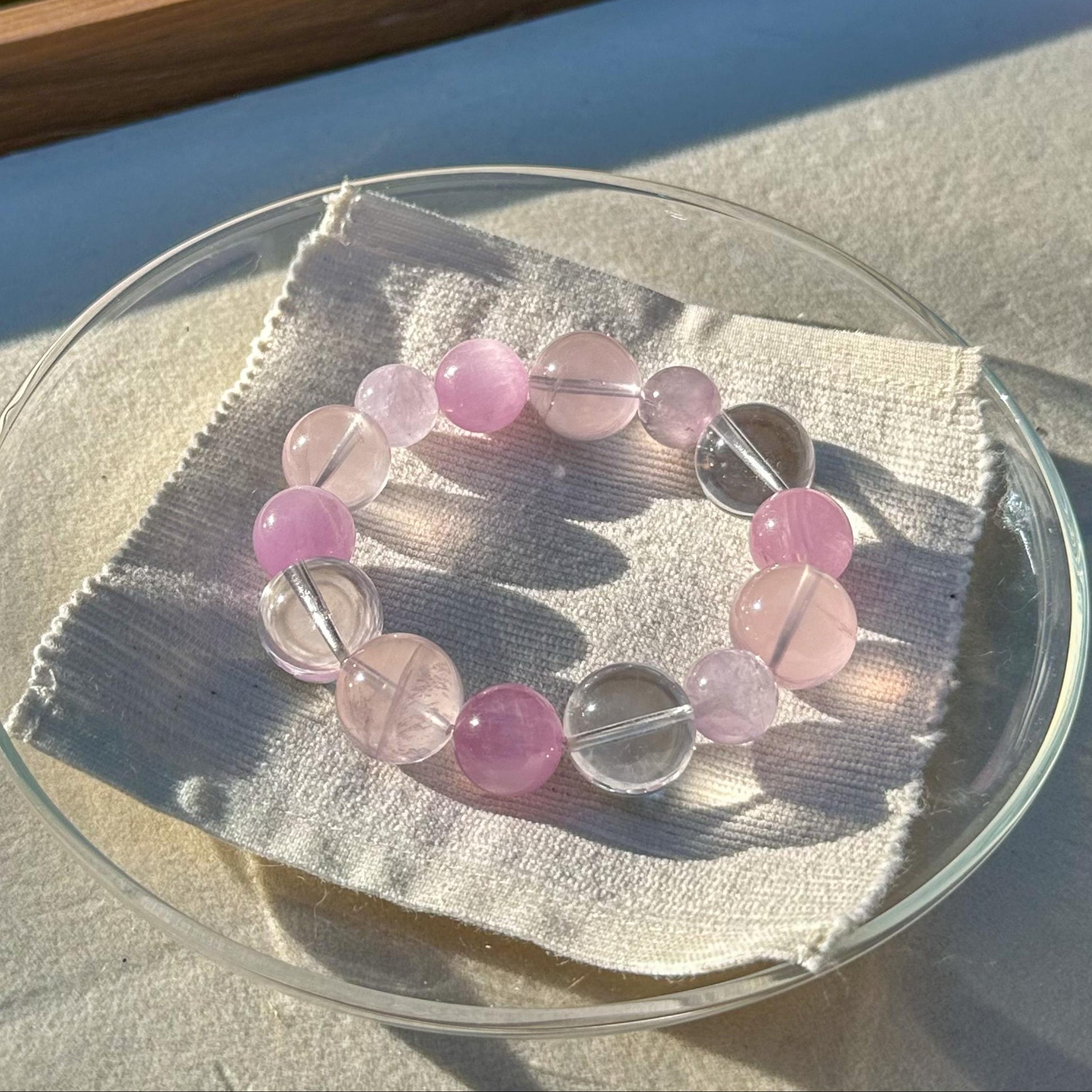 Rose quartz, kunzite, lavender quartz, and clear quartz come together to create a quiet sense of ease - something to return to when the day feels full.